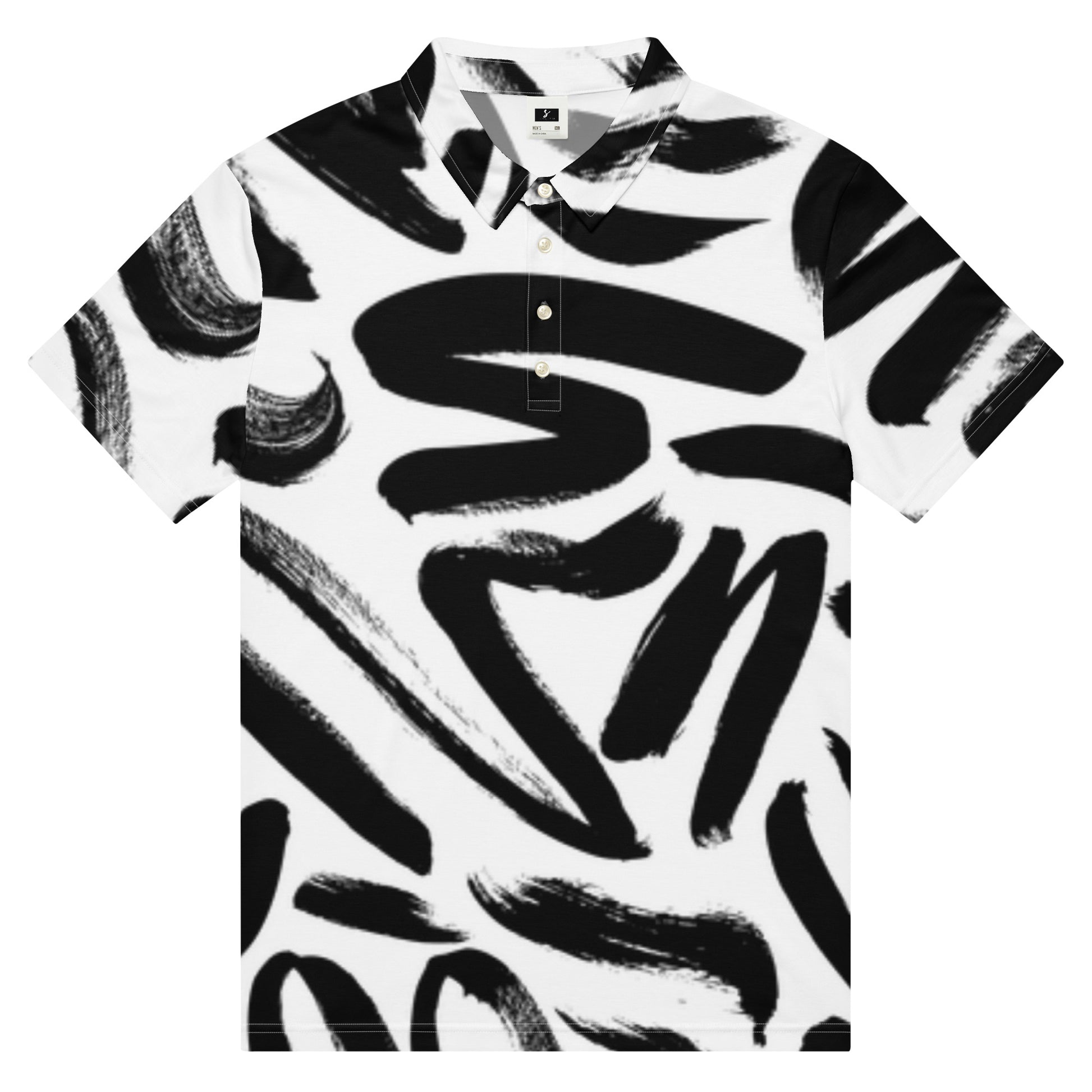 Luxe Soulstar Men’s B&W Brushstroke Slim Fit Polo
